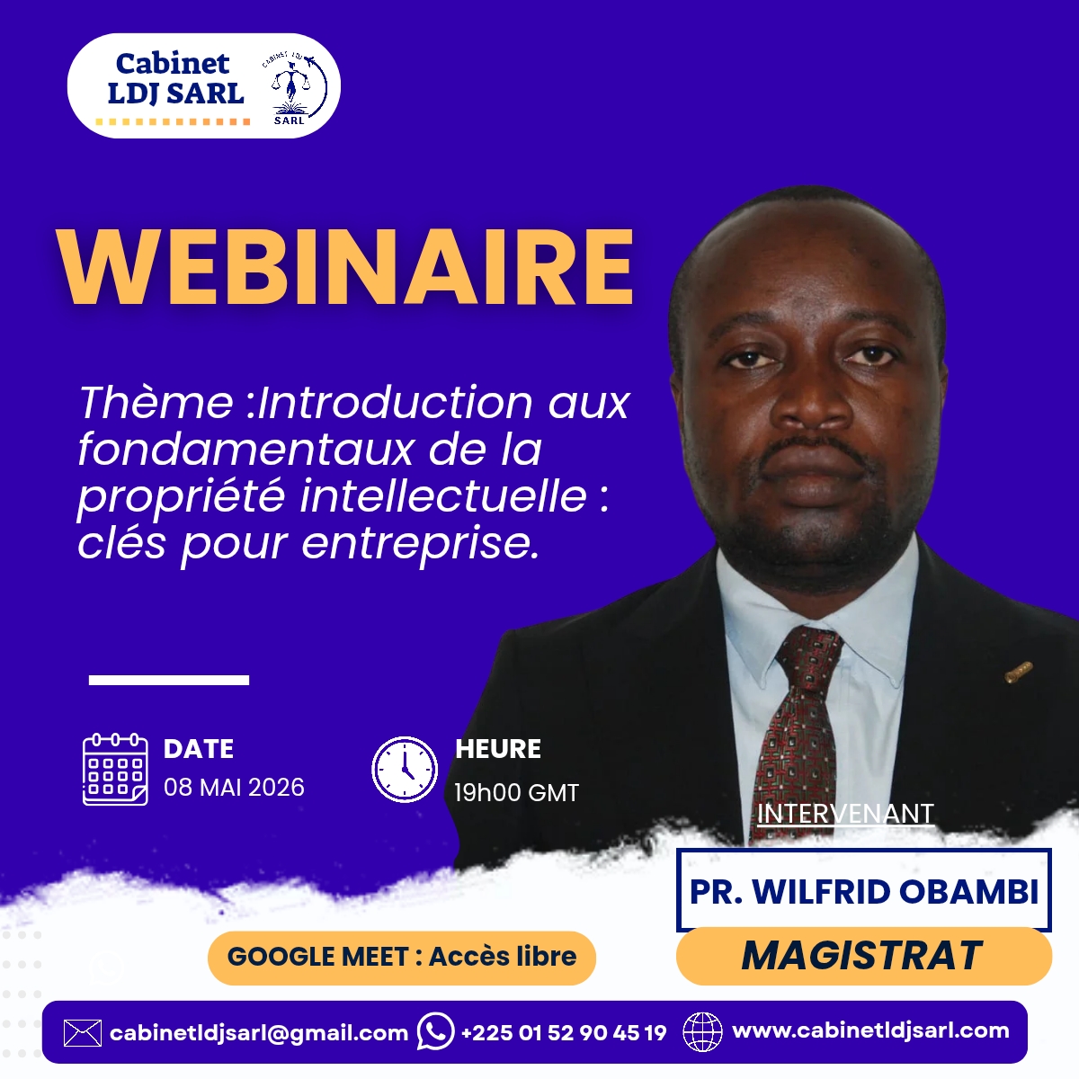 Pour vos besoins en la matière, veuillez contacter le Cabinet LDJ SARL : (+225) 27 23 23 21 64 / 05 96 11 90 94 / 01 52 90 45 19 (WhatsApp).